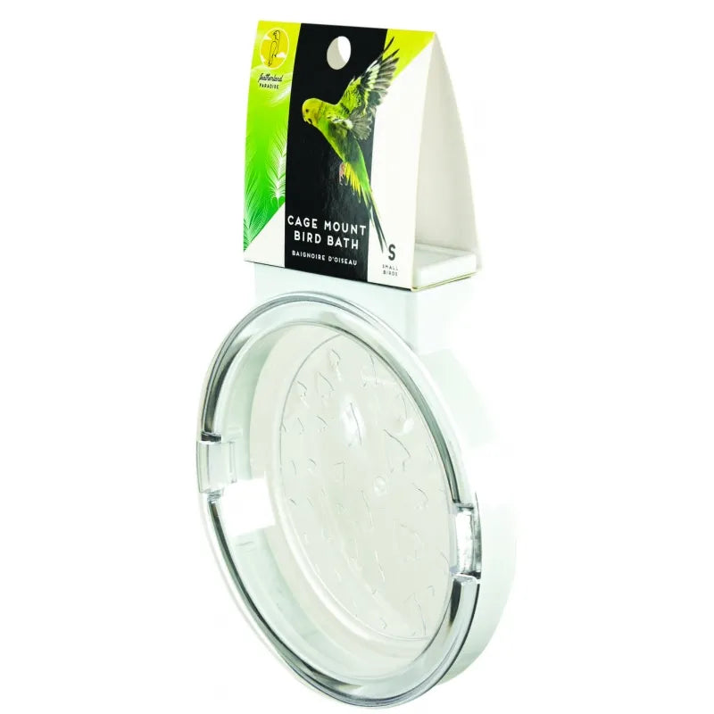Het Featherland Paradise Cage Mount Bird Bath is een stevig bad voor kleine vogels. Het Featherland Paradise Cage Mount Bird Bath is gemakkelijk aan iedere traliekooi te bevestigen en is gemaakt van dik kauwbestendig plastic. Net als wij vinden vogels het ook fijn om iedere dag een bad of douche te nemen. Door het Featherland Paradise Cage Mount Bird Bath in het verblijf van jouw vogel te bevestigen kan hij zelfstandig en wanneer hij maar wil badderen.